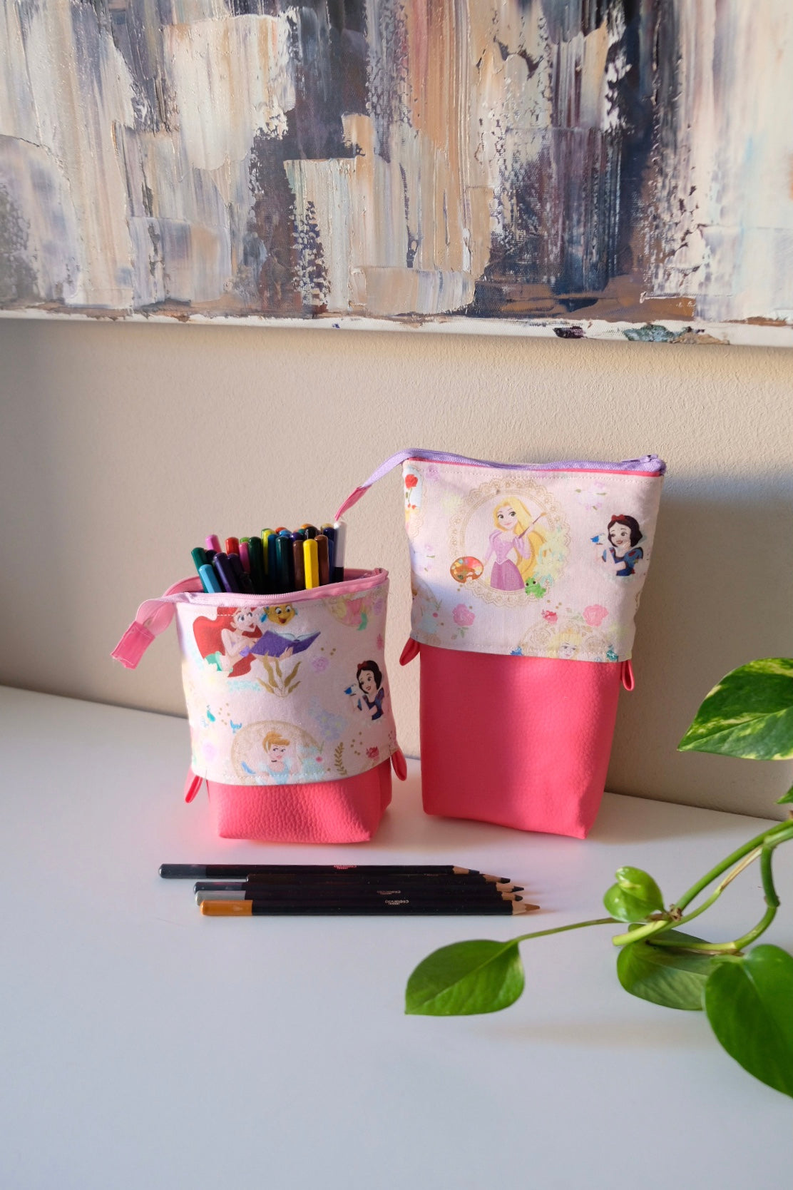 Questo astuccio rimane in piedi da solo. Pennarelli, matite colorate e penne sono a portata di mano per poter essere utilizzate con praticità.