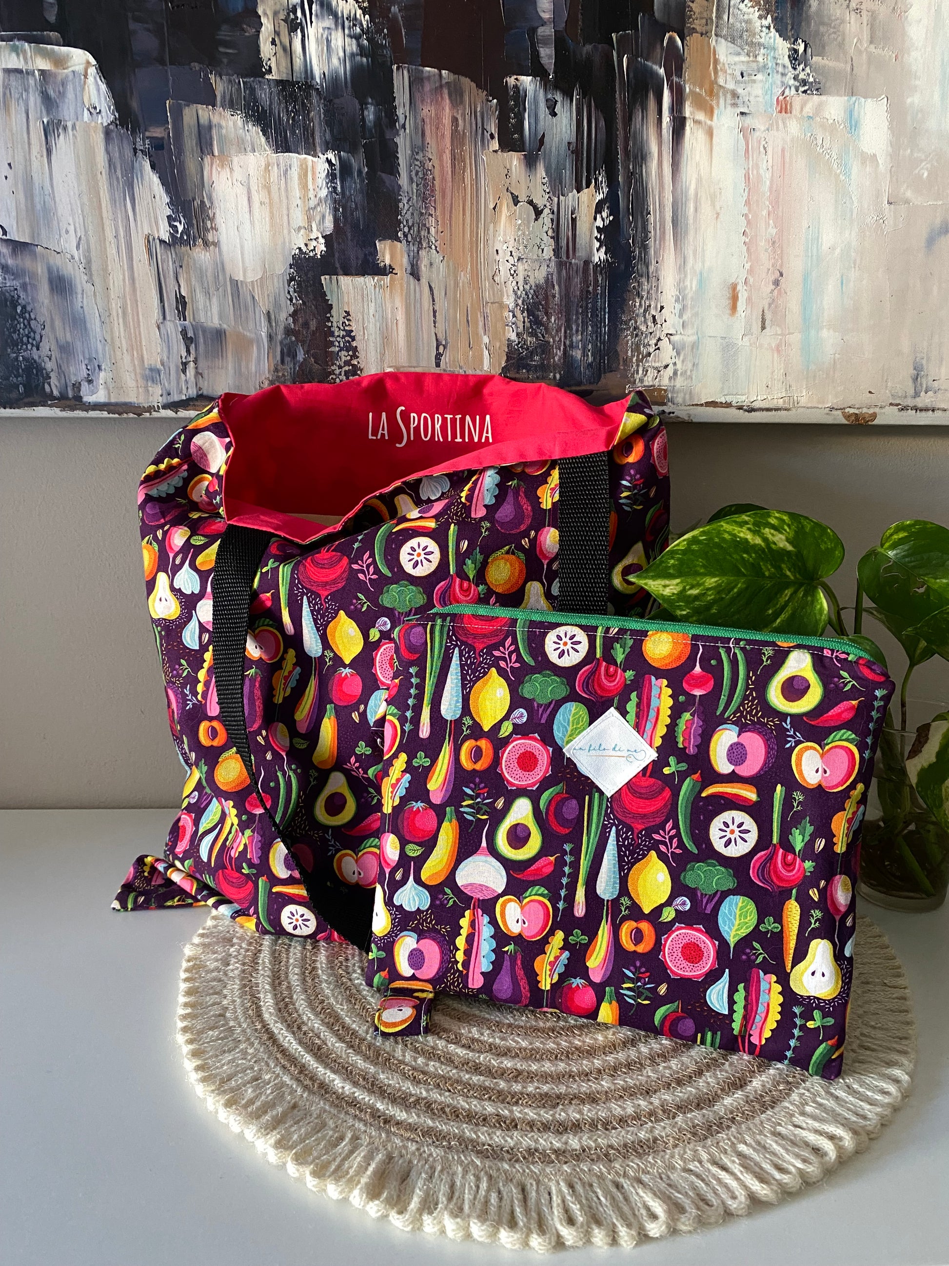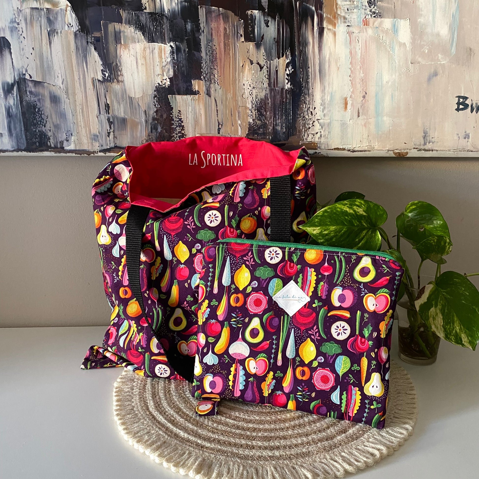 La Sportina + pochette grande con polsino portachiavi - frutta e verdura