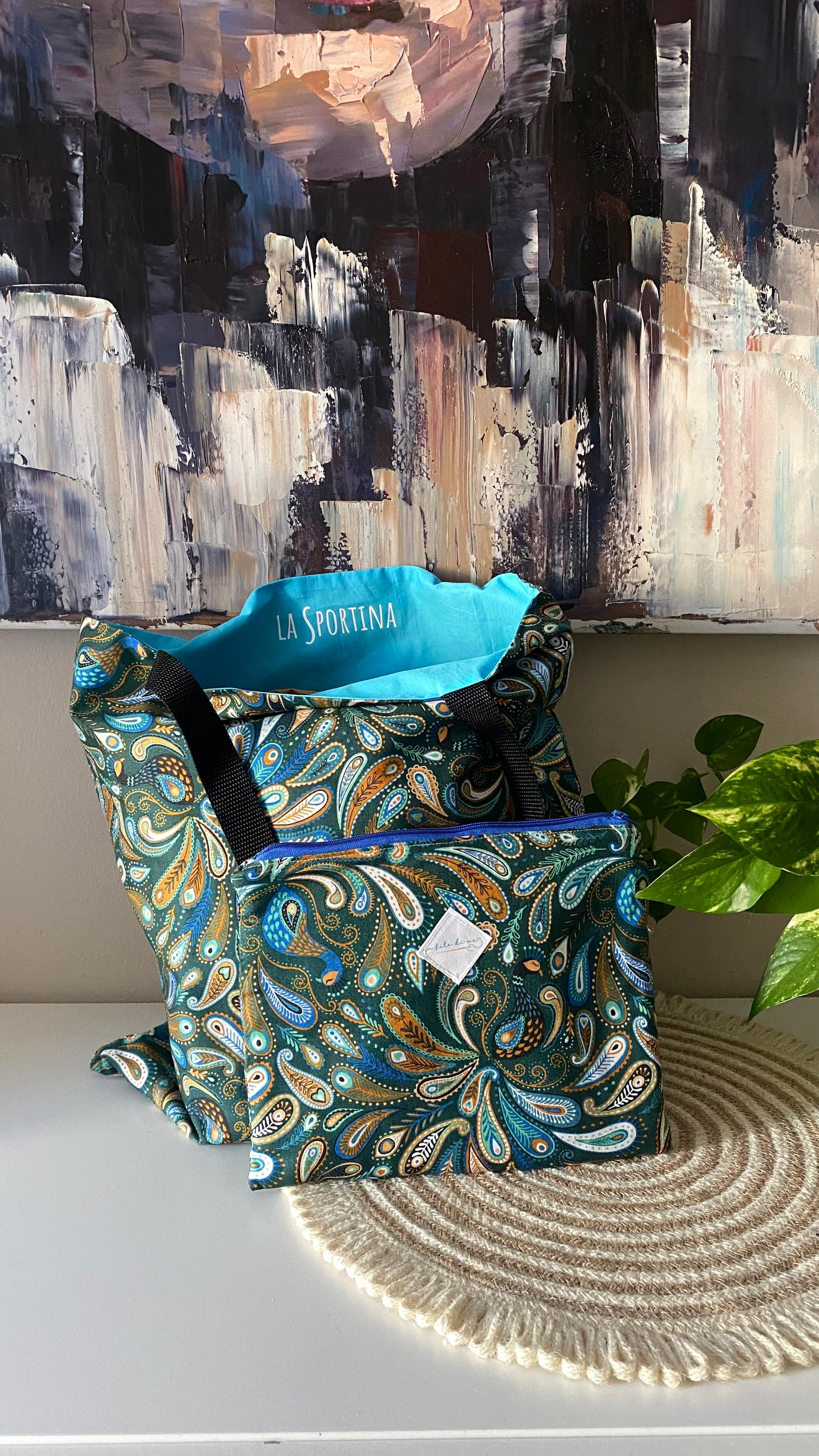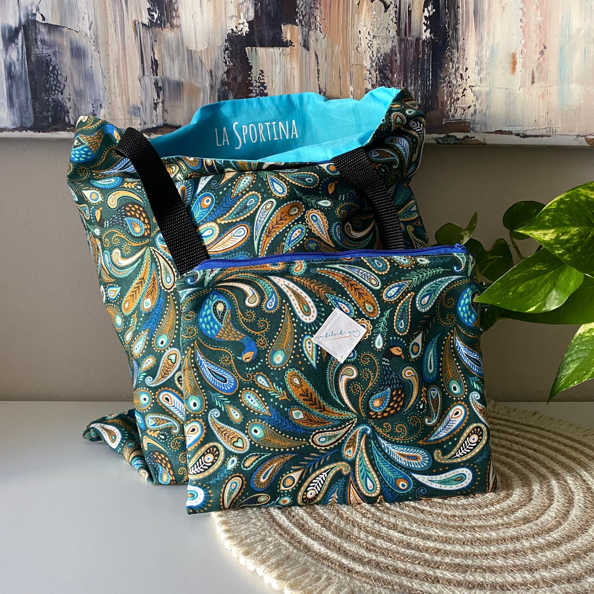 La Sportina + pochette grande -pavone