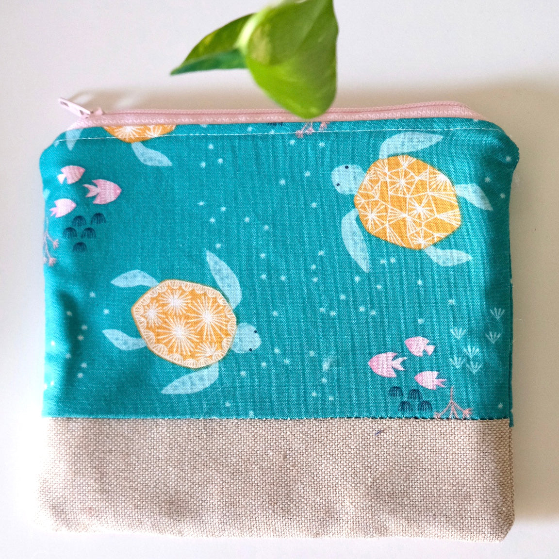Pochette in cotone fantasia rifinita con banda in cotone grezzo.