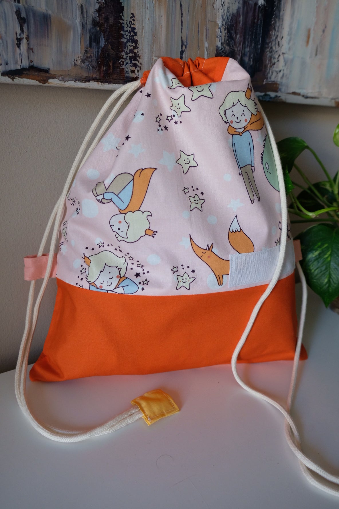 Sacca asilo in stoffa fantasia con cordino in cotone