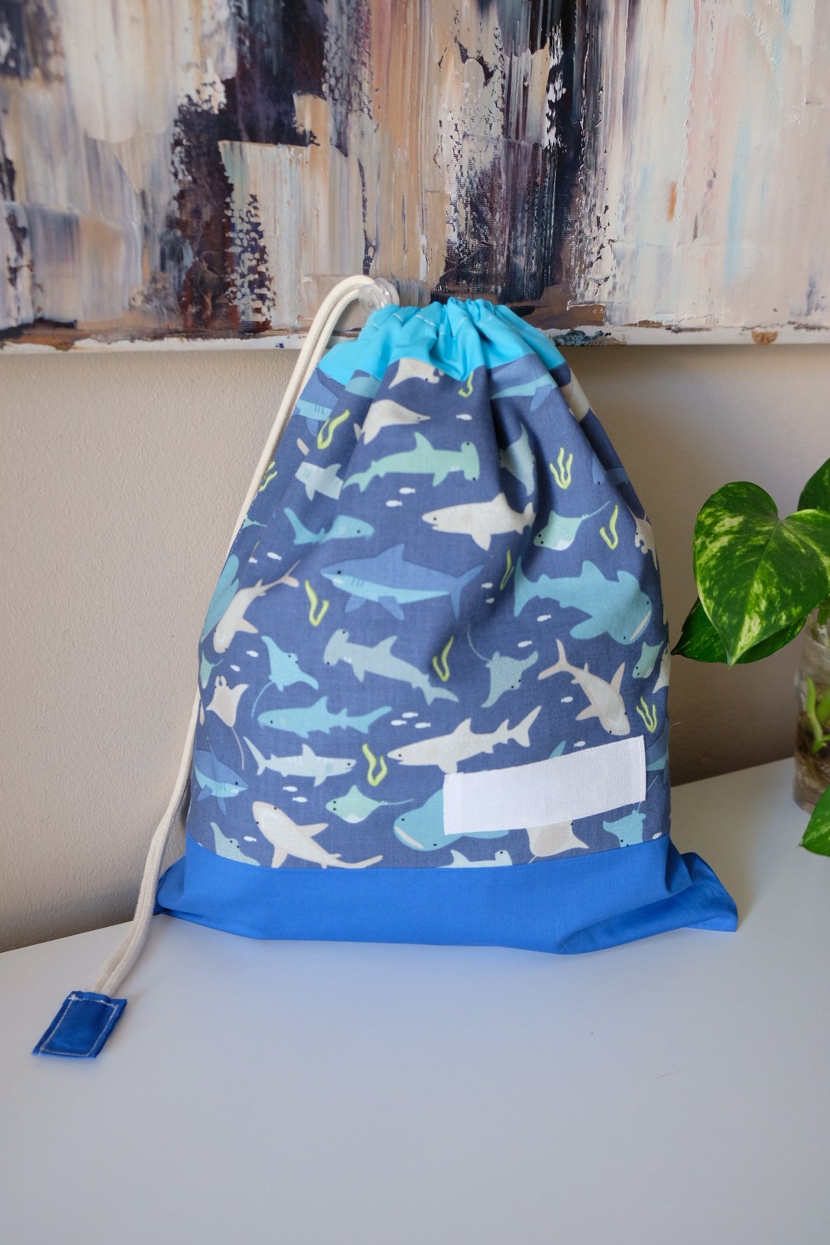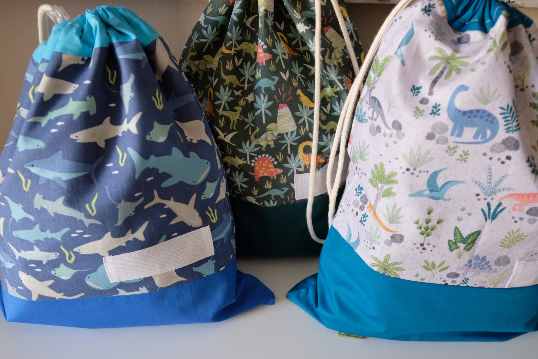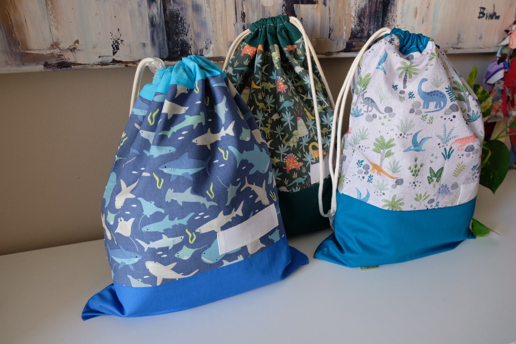 Sacca asilo in stoffa fantasia con cordino in cotone