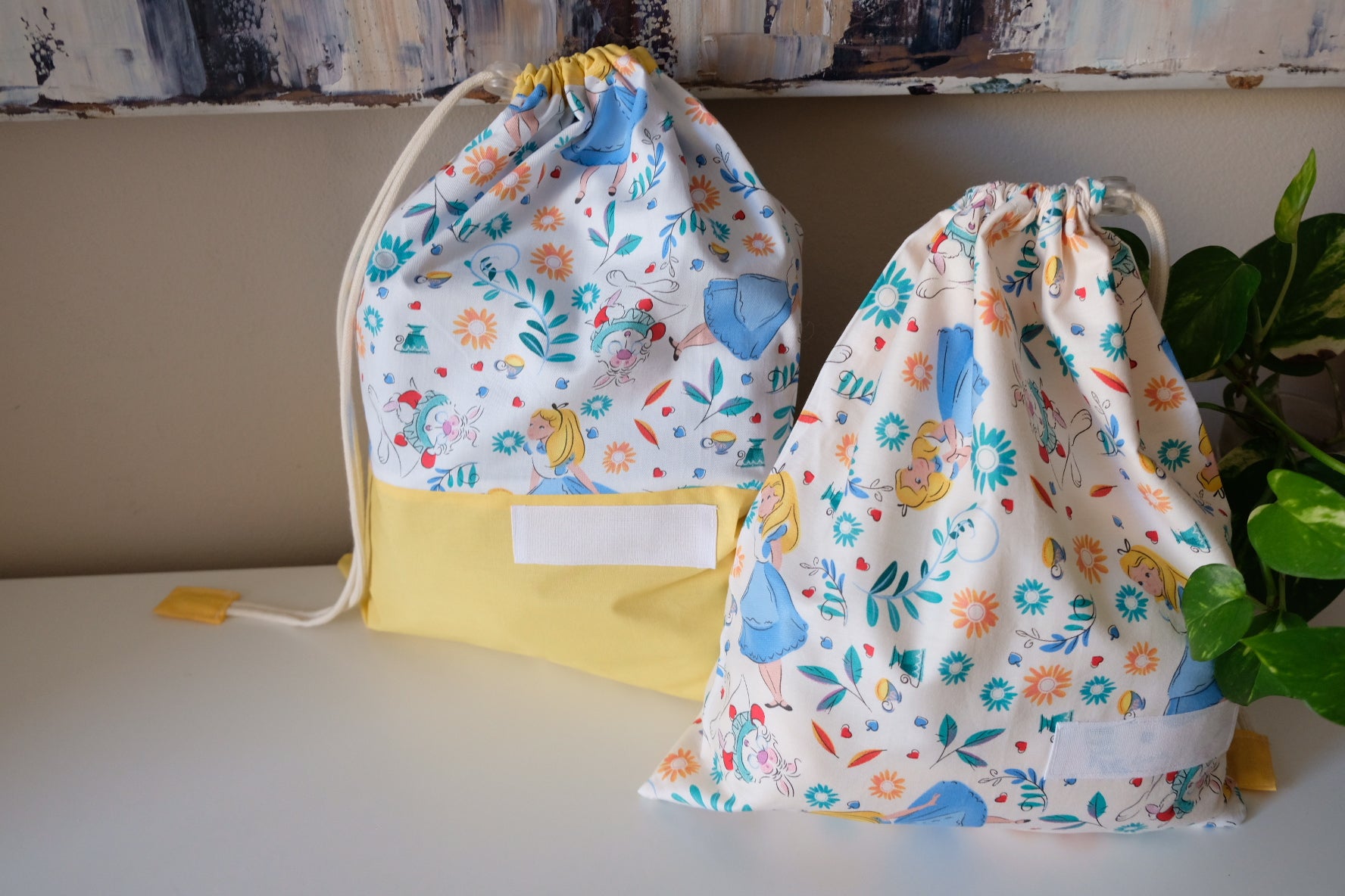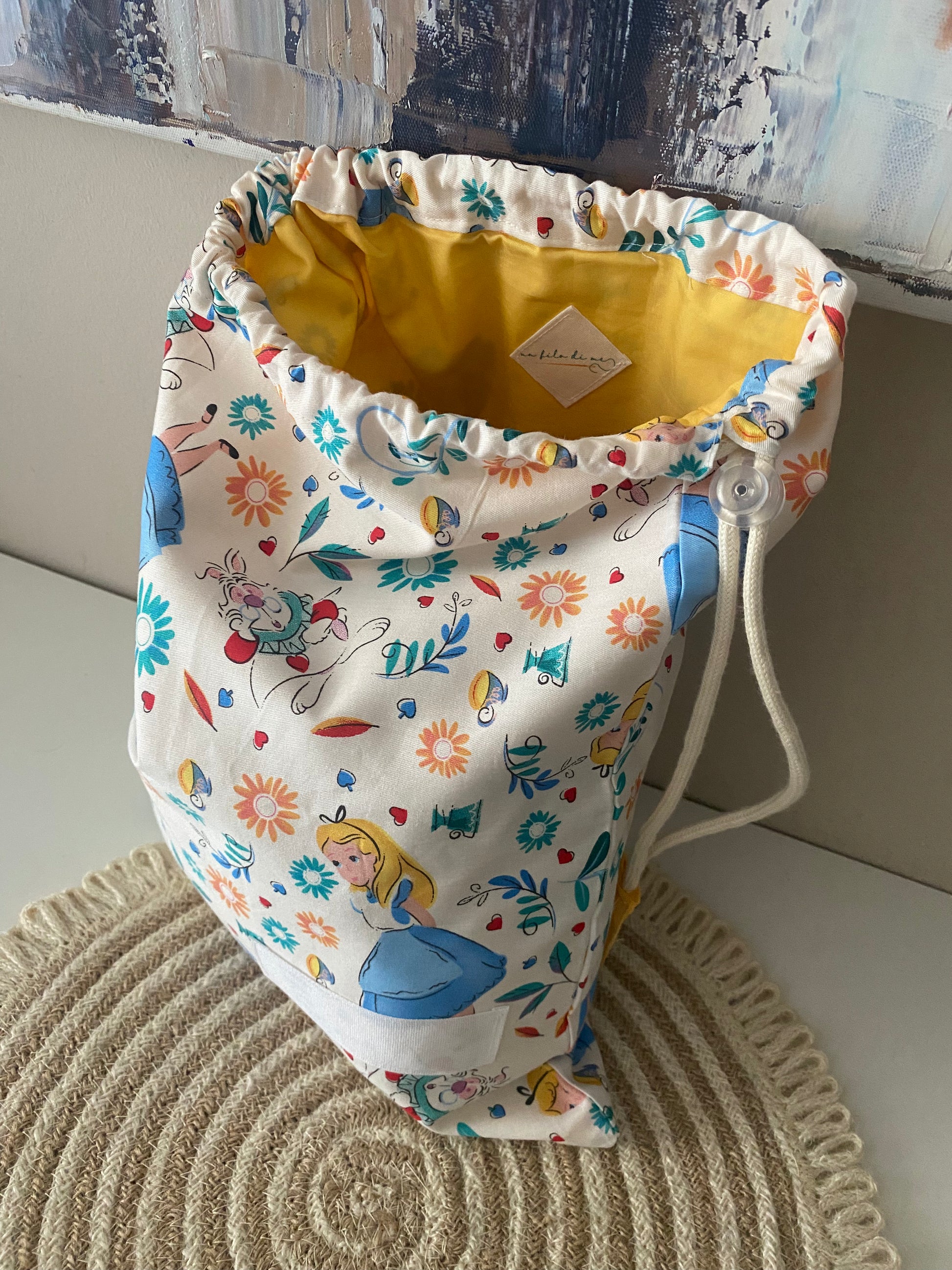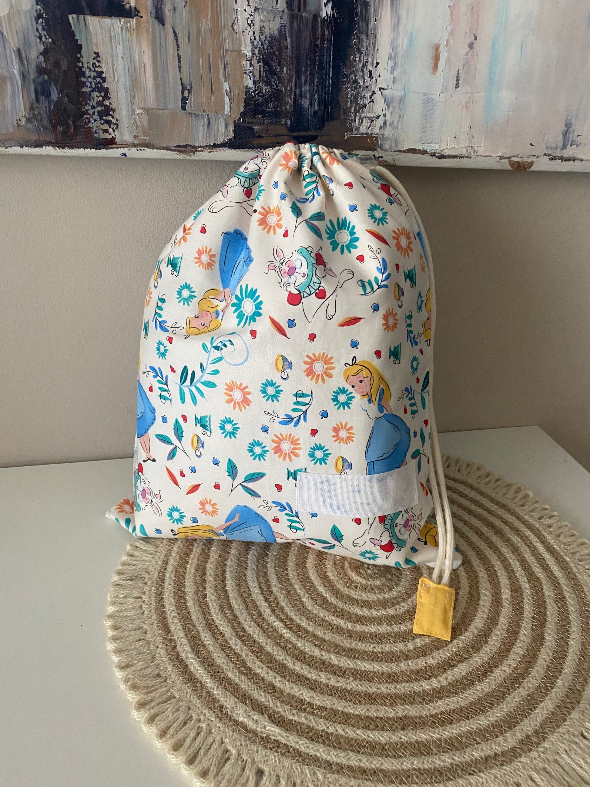 Sacca asilo in stoffa fantasia con cordino in cotone