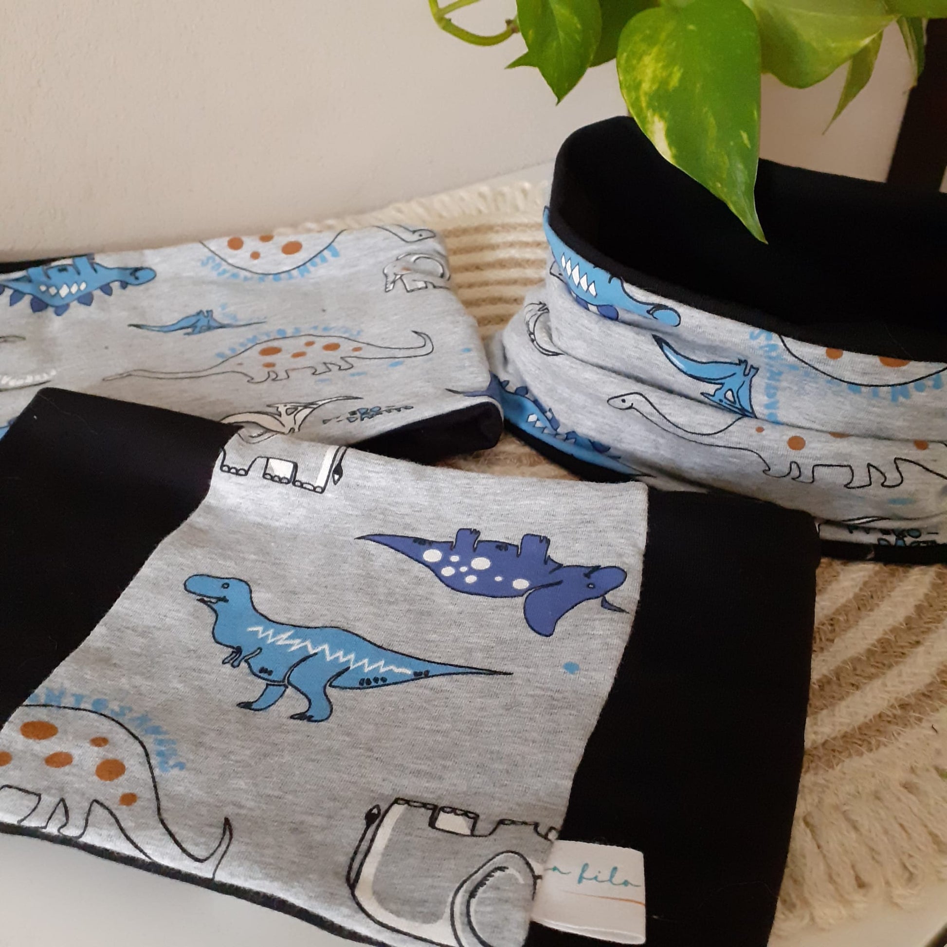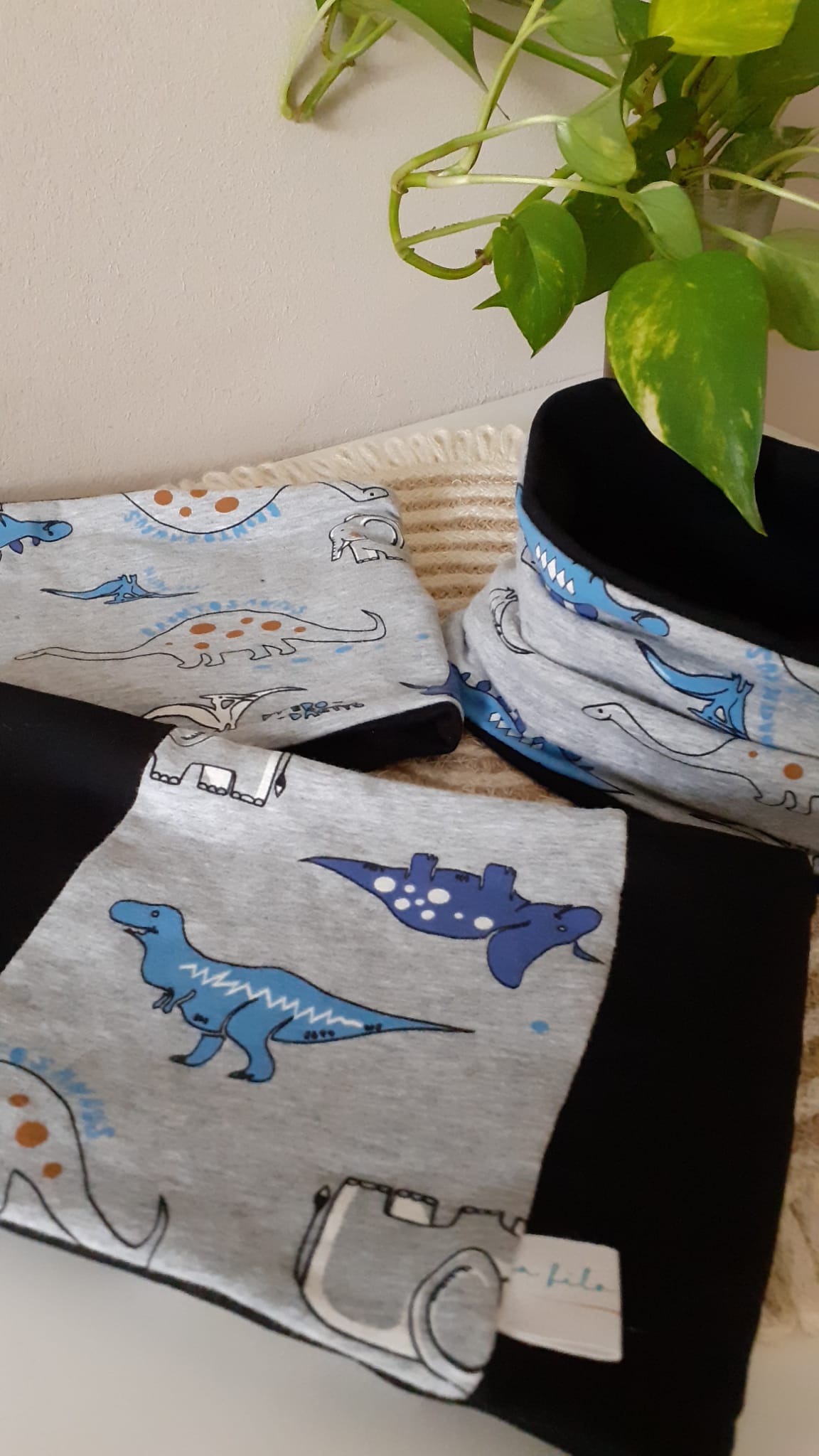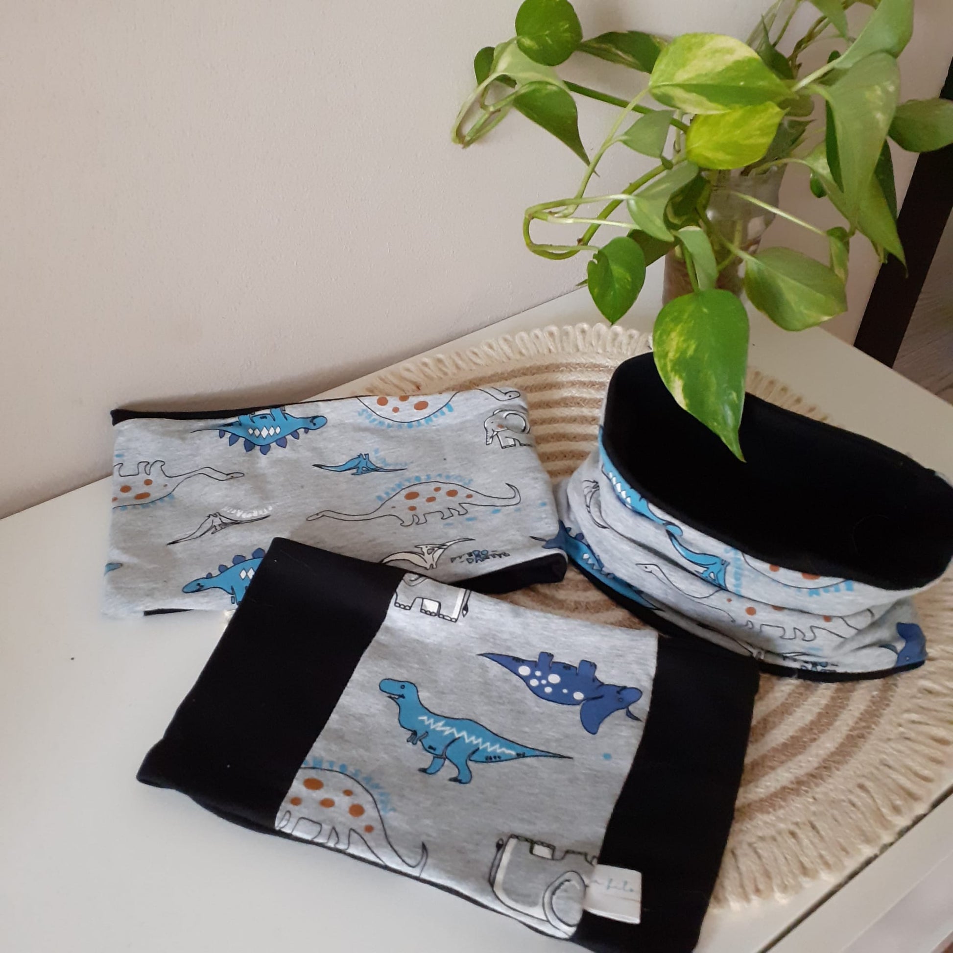 Morbido scaldacollo in jersey fantasia e jersey felpato nero