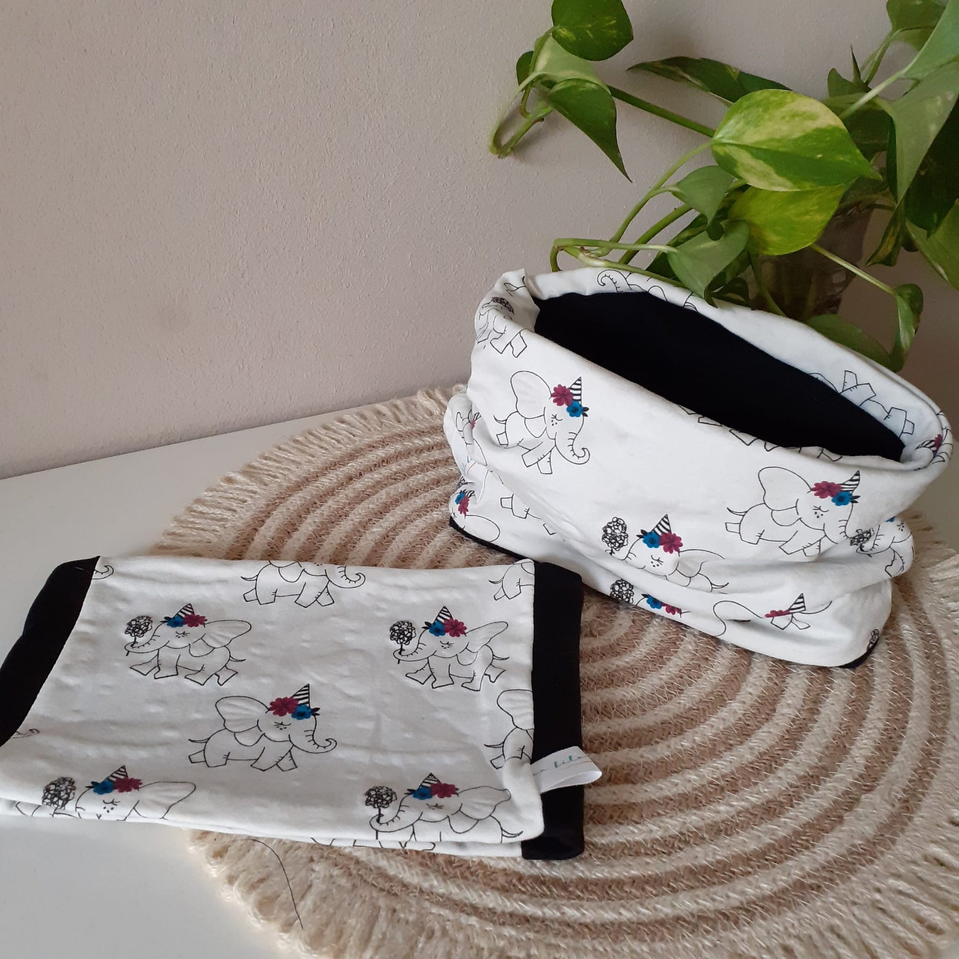 Morbido scaldacollo in Jersey fantasia e jersey felpato nero