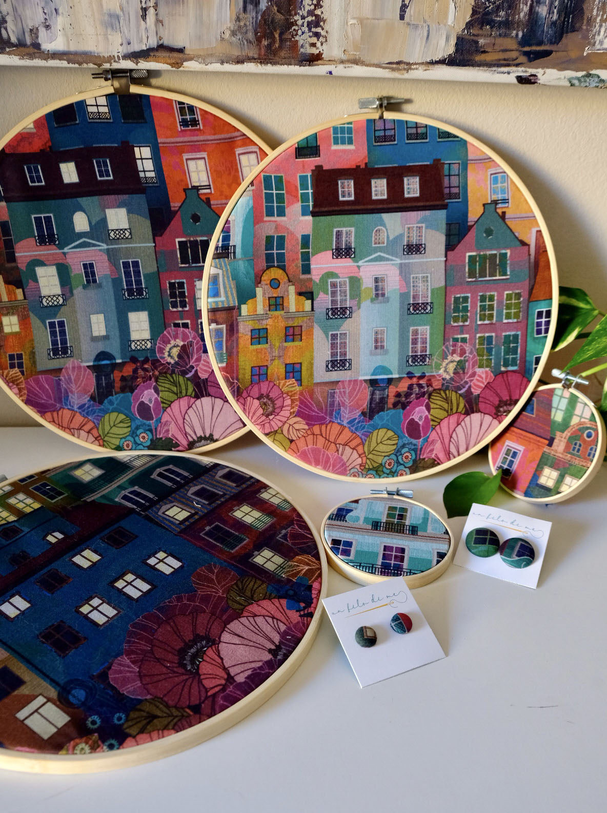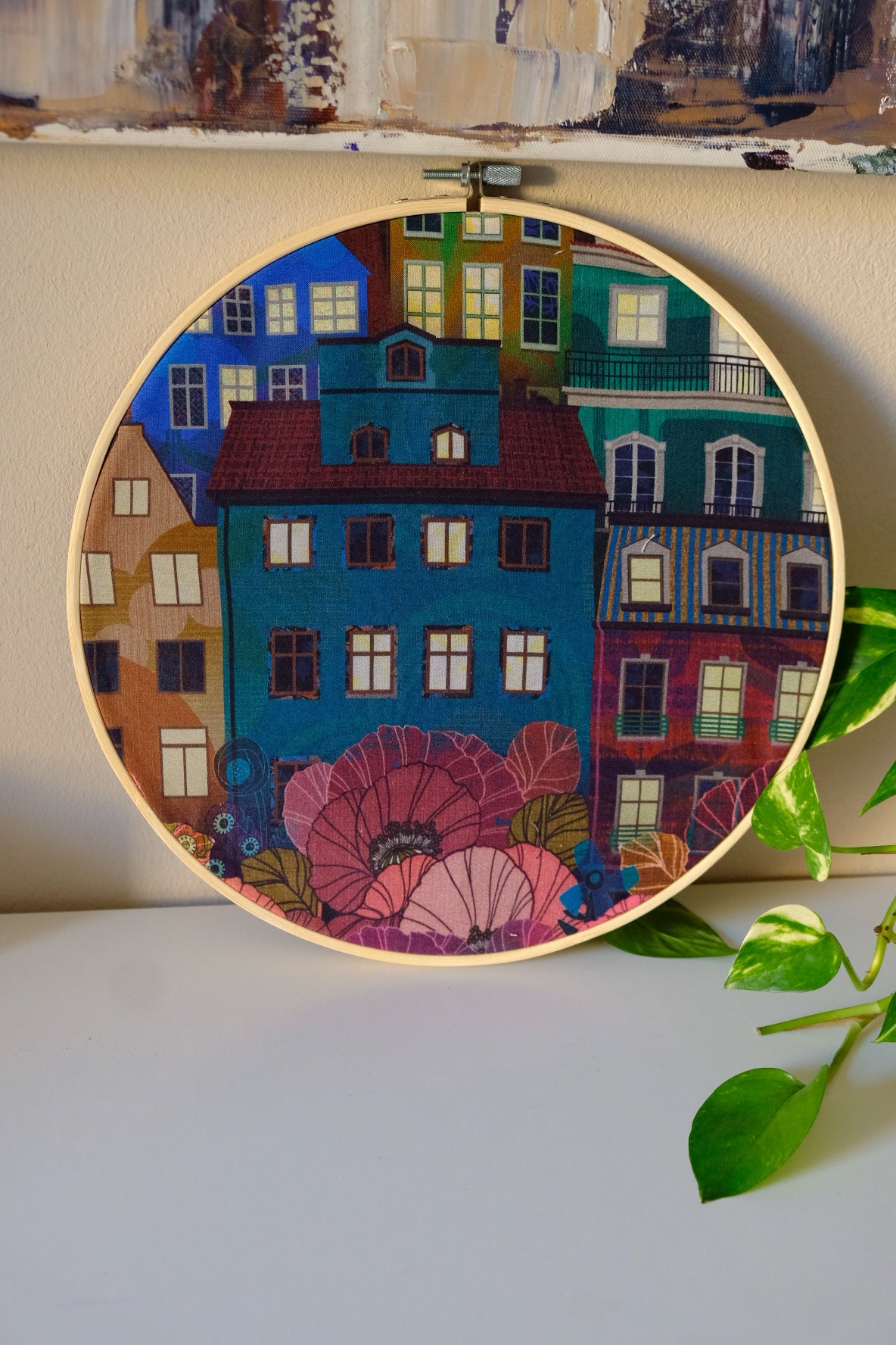 Telaio decorativo in bamboo con canva in cotone stampato. Parigi di notte.